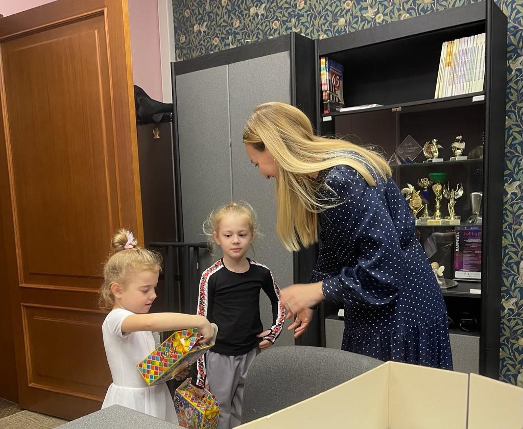 В семье Санаровых четверо детей – двое мальчиков и двое девочек. Все посещают химкинскую Детскую школу искусств – сыновья учатся живописи, а сестры – танцам и игре на флейте. Инна Монастырская поздравила детей и родителей с Крещением и вручила сладкие подарки.