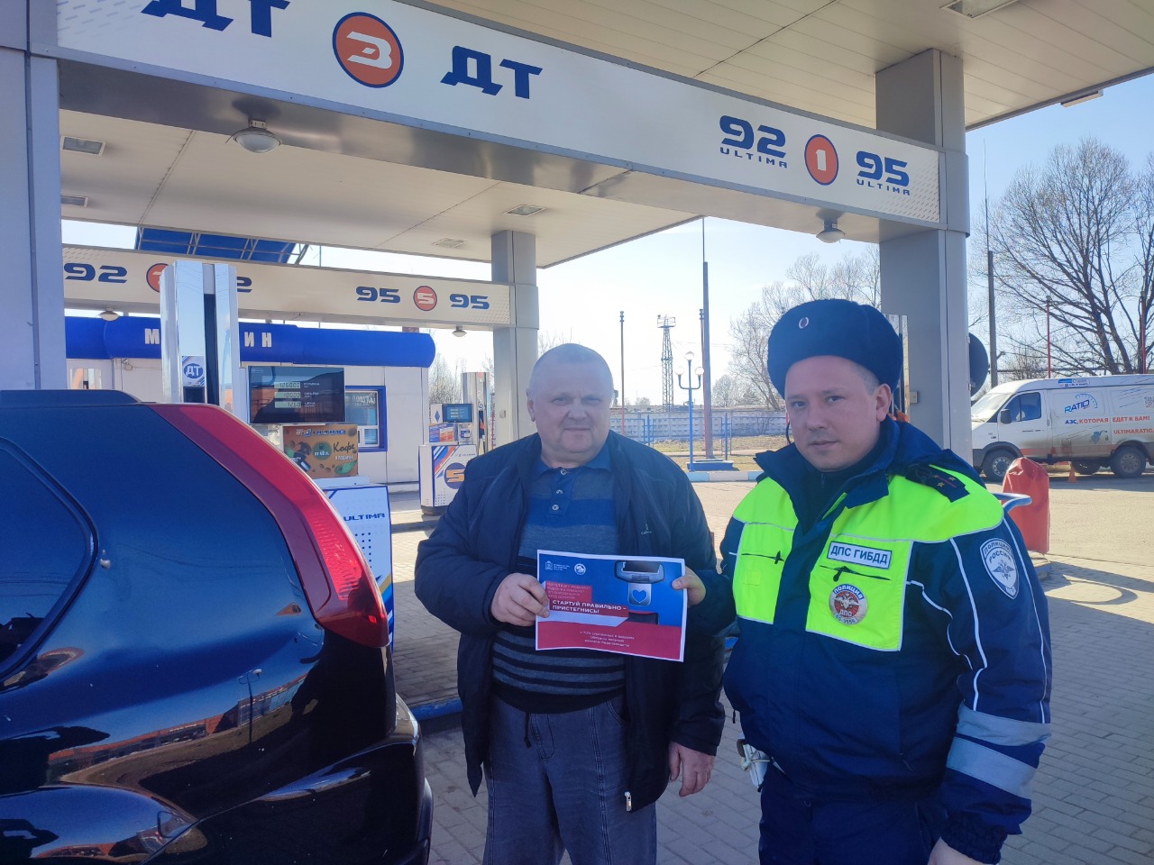 В рамках проведения областного социального раунда по безопасности дорожного движения «Один щелчок спасает жизнь», инспекторский состав дорожно-патрульной службы отдела Госавтоинспекции УМВД России по Наро-Фоминскому городскому округу провел профилактические беседы по соблюдению мер безопасности при проезде в транспортном средстве и перевозке пассажиров на АЗС и в автосалонах.