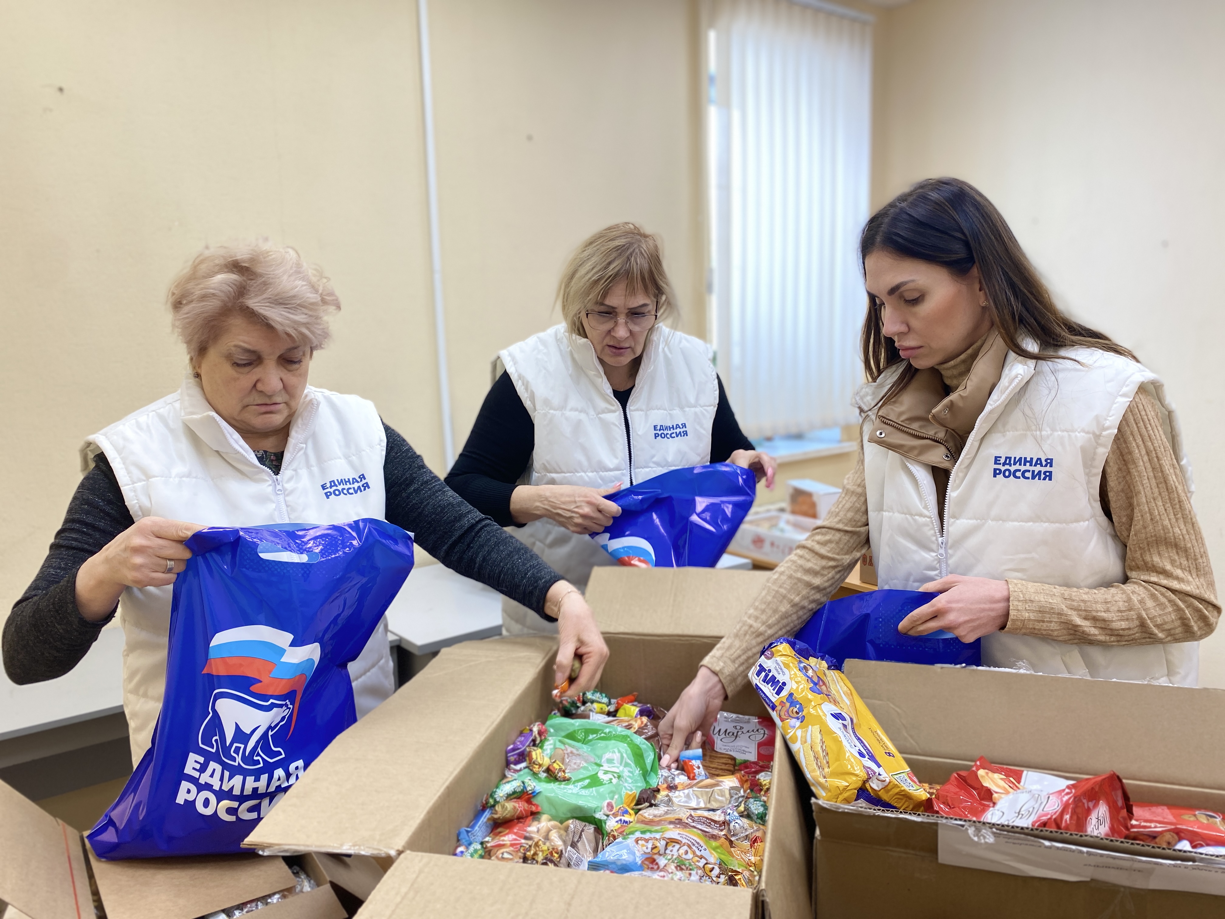 Единороссы собрали подарочные наборы и сладкие угощения и отправили груз для доставки защитникам Родины.