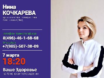 Об ЭКО и женском здоровье накануне женского дня в прямом эфире поговорим с врачом гинекологом-эндокринологом Раменского ЦМИД Ниной Викторовной Кочкаревой.