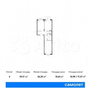 - Общая площадь: 59.2 м²