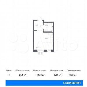 - Общая площадь: 21.4 м²